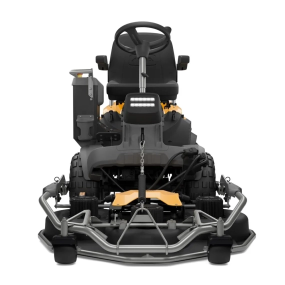 ePark Pro er designet for lange arbeidsdager og tilbyr en komfortabel og intuitiv kjøreopplevelse. Det ergonomiske, sklisikre setet med høy ryggstøtte og armlener reduserer tretthet, mens det profesjonelle brukergrensesnittet plasserer alle kontroller innen rekkevidde. Det innebygde dashbordet gir full elektrisk kontroll over trekkraft, klippeaggregat og maskinfunksjoner, supplert med app-baserte innstillinger og overvåking.