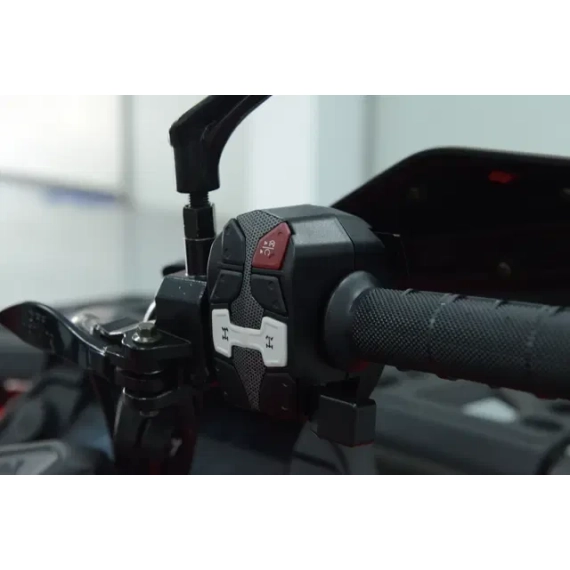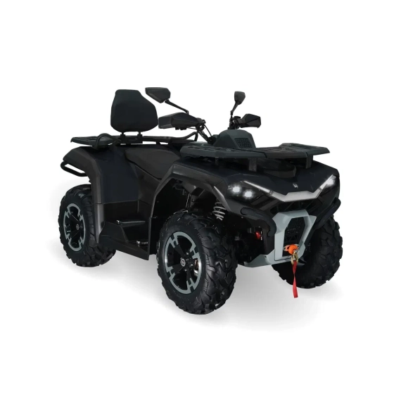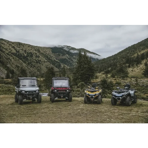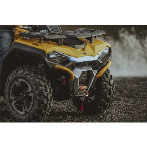 Drive-by-wire funksjon, vinsj, 14” alu-felger, Tilhengerfeste med kule, Winjs foran, bukplate, Power steering, LED-lys, 7” LCD-skjerm, beskyttelsesplast på rack foran og bak, håndbeskyttere og ryggstøtte, kraftig støtdempere