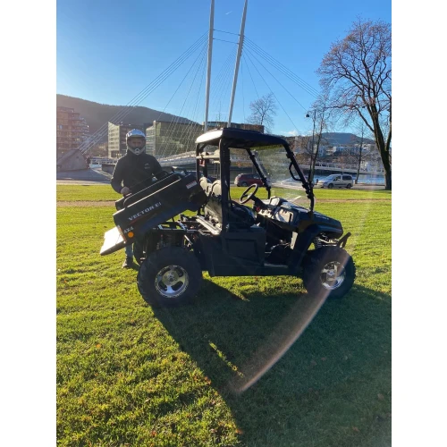 Sector E1 har solid kjørelengde - Massiv lastekapasitet - Stillegående og miljøvennlig! Bygget for stabilitet og ytelse. Kjøretid etter en enkel ladning - inntil 70 km. Inkludert i prisen er: vedlikeholdsfritt Discover™ batteri og integrert lader - tilhengerfeste - vindskjerm - tak - aluminumsfelger - justerbare gasstøtdempere. 8 timers ladetid på 16 Ah kurs. Avbildede modeller kan avvike fra standardleveranse og kan være vist med ekstrautstyr. Sector E1 MC-registrert UTV er godkjent for 2 personer og kan kjøres av personer med bilsertifikat. Sector E1 er typegodkjent som en elektrisk drevet 4-hjuls motorsykkel og er eldrevet 4-hjuls motorsykkel er ikke mva-pliktig. Sector E1 er egnet til bruk i temperaturer mellom -25 til +45 grader!