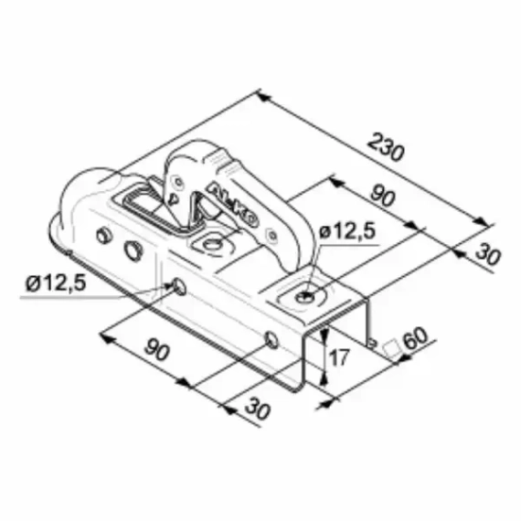 Kulekobling firkant 60mm 750kg