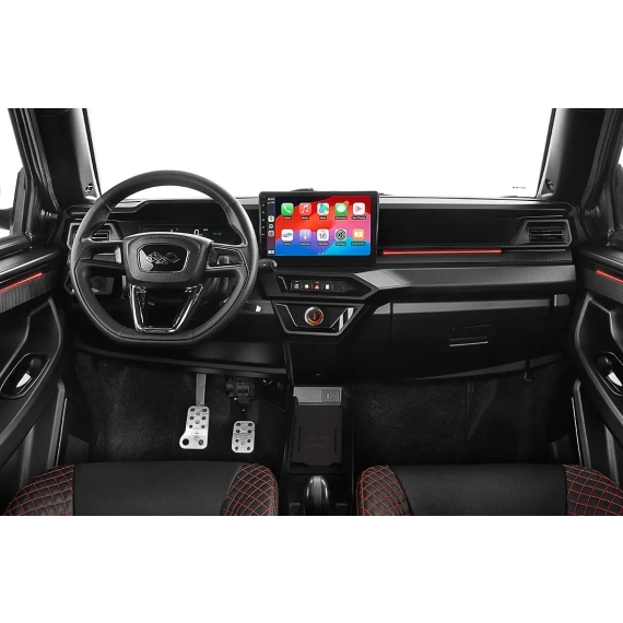 Den nye Ligier JS50 er et teknologisk mesterverk – både innvendig og utvendig. Mopedbilen er utstyrt med en 10-tommers berøringsskjerm, fullt kompatibel med Apple CarPlay og Android Auto, slik at du får sømløs tilkobling på veien.