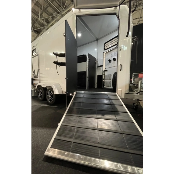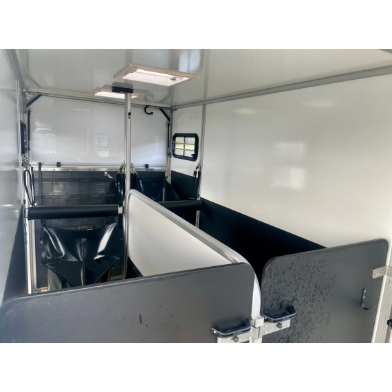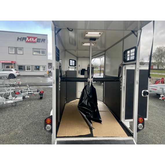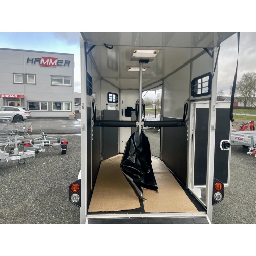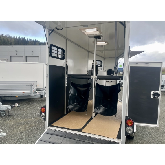 Tilhengeren er laget av aluminium og sandwichelementer. Det gir store plasser, lav vekt og høy lastekapasitet. Den sterke og stabile konstruksjonen sørger også for at hesten din rir så trygt som mulig.